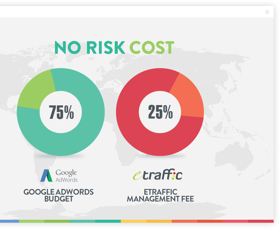 Our management fee is just 25% of your AdWords investment. This small percentage is well below the market average, and when you consider that you are not locked into a contract, we just don’t see how you have anything to lose.